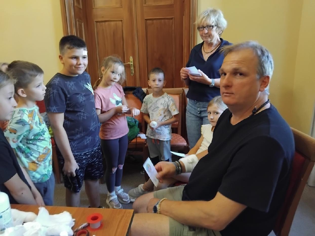Začali jsme oblíbenou zdravovědou s lektorem Vladimírem Müllerem – na konci dne už malí záchranáři zvládali první pomoc levou zadní!
