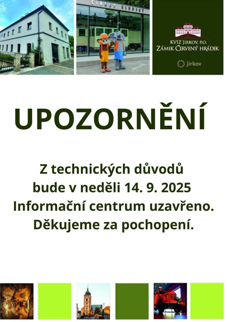Z technických důvodů bude v neděli 14. 9. 2025 Informační centrum uzavřeno. Děkujeme za pochopení.