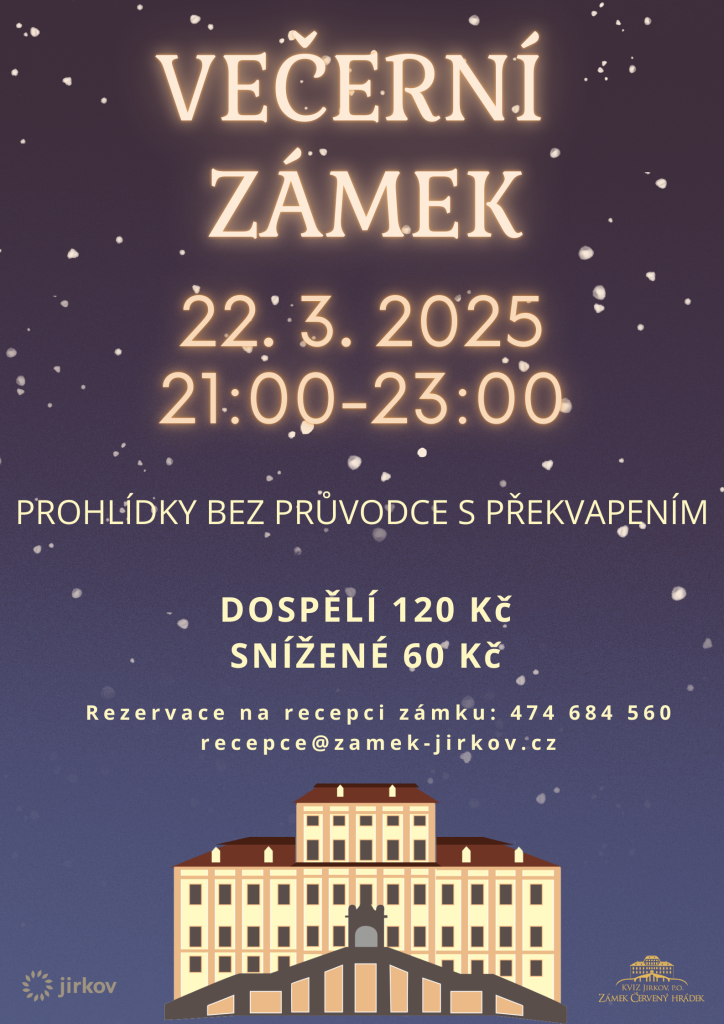 Zažijte jedinečnou atmosféru zámku pod rouškou tmy! Zámek si projdete sami, můžete objevit jeho tajemná zákoutí a také máme pro vás připravené překvapení.